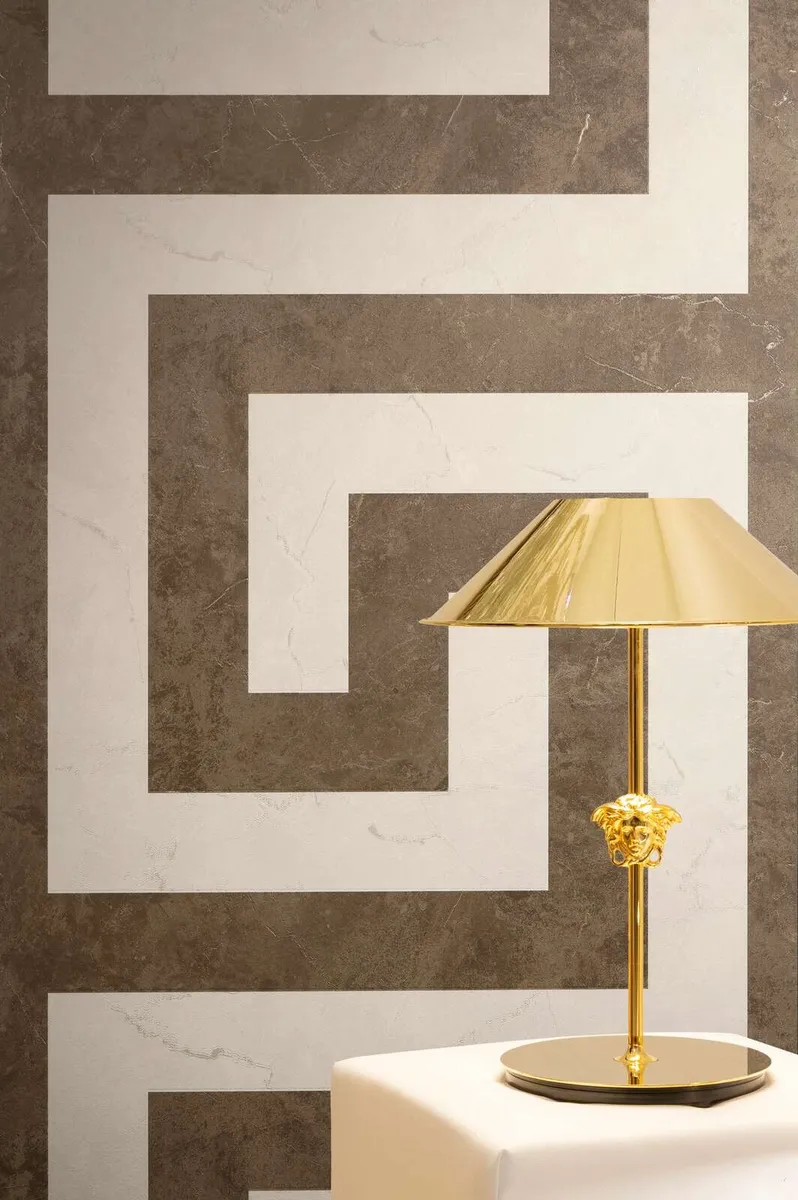 Luksusowa tapeta Versace VI inspirowana antyczną Grecją i symboliką domu mody Versace nadaje wnętrzu prestiżowy charakter. Wyróżnia się eleganckim, geometrycznym ornamentem greckiego klucza (meander) na tle imitującym naturalny kamień, marmur. Wykonana z materiałów najwyższej jakości, jest wyjątkowo trwała, łatwa w montażu i dopracowana w każdym detalu.