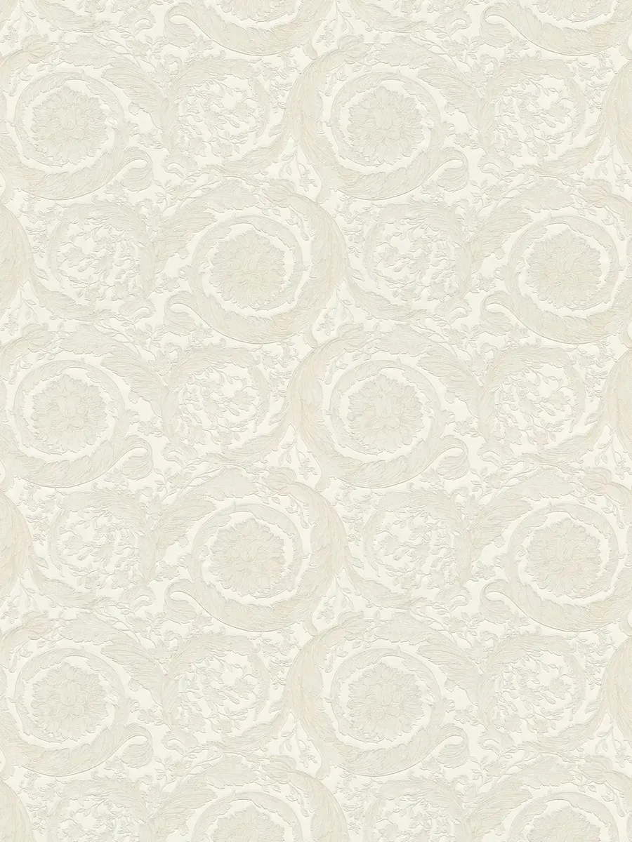 → Sypialnia: Subtelna tapeta z ornamentem roślinnym idealnie nadaje się na wszystkie ściany w sypialni. Delikatny wzór Versace dodaje wnętrzu klasy i przytulności. Może być też użyta jako tapeta za łóżkiem, tworząc spokojne, harmonijne tło sprzyjające relaksowi.