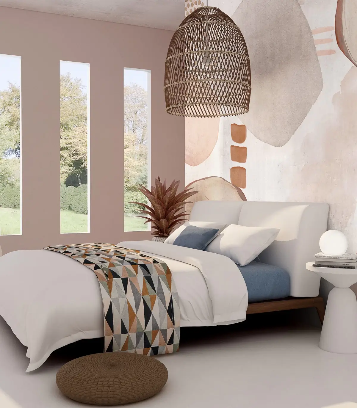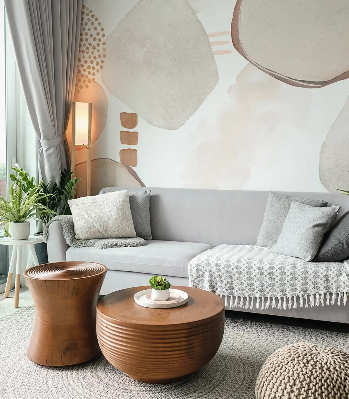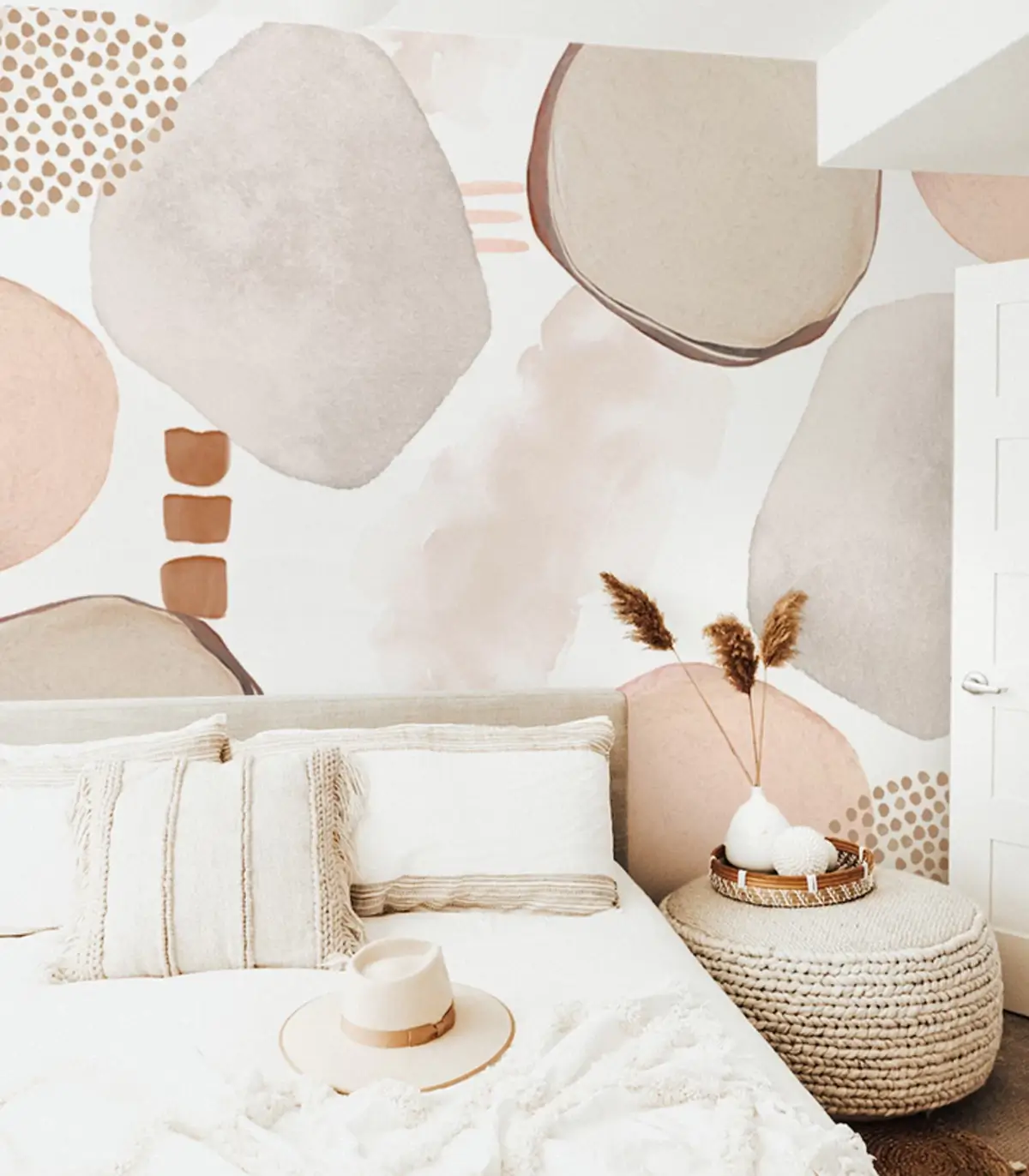 Tapeta w nowoczesnym stylu utrzymana w ciepłej, stonowanej kolorystyce, nadaje wnętrzu delikatny, nowoczesny charakter. Wysokiej jakości materiał zapewnia trwałość, łatwy montaż oraz perfekcyjne wykończenie.