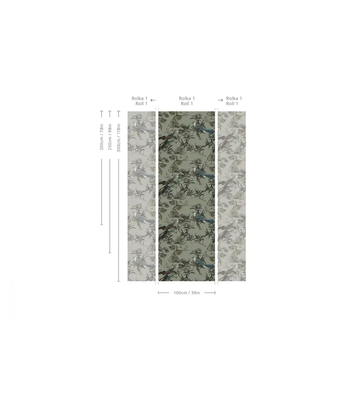 Dekoracyjna tapeta w odcieniach zieleni i z realistycznymi ilustracjami ptaków wprowadza do wnętrza atmosferę angielskiego ogrodu i ponadczasowej elegancji w lekkim wydaniu. Wysokiej jakości materiał zapewnia trwałość, łatwy montaż oraz perfekcyjne wykończenie.