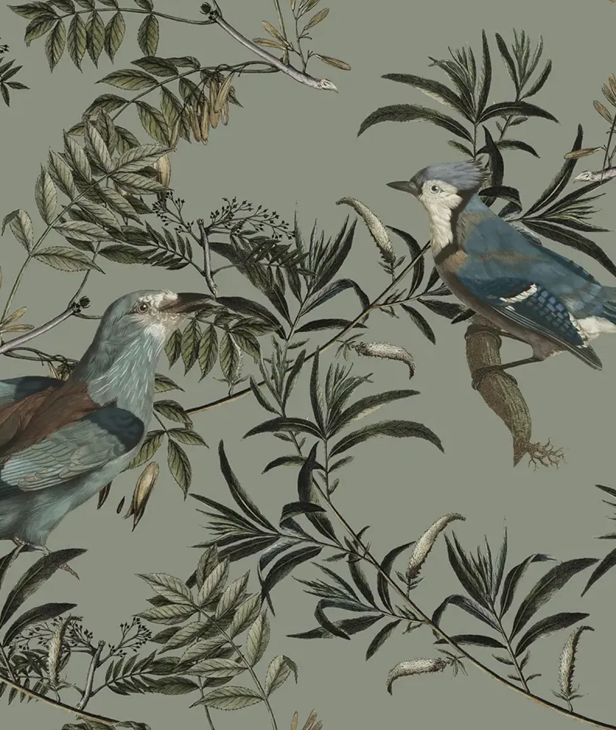Tapeta z ptakami na zielonym tle Birds in Garden Wallcolors