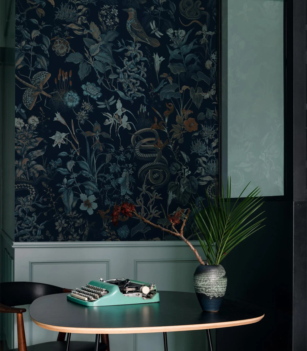 Ekskluzywna tapeta muralowa Botanic to wyjątkowa dekoracja ścienna inspirowana tropikalnym światem przyrody, pełnym bujnych roślin i egzotycznych zwierząt. Wzór utrzymany w stylu vintage wprowadza do wnętrza niepowtarzalny, eklektyczny klimat, łącząc w sobie naturalność i luksus. Granatowe tło i subtelne detale tworzą efekt głębi i tajemniczości, a starannie dobrany materiał zapewnia trwałość, łatwość montażu oraz estetyczne wykończenie.