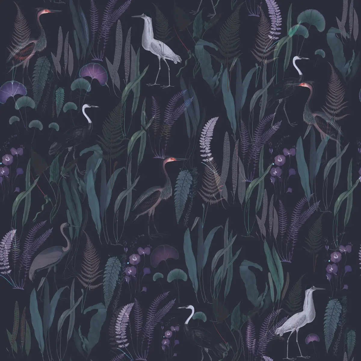 Tapeta z czaplami Calm Heron Purple Wallcolors