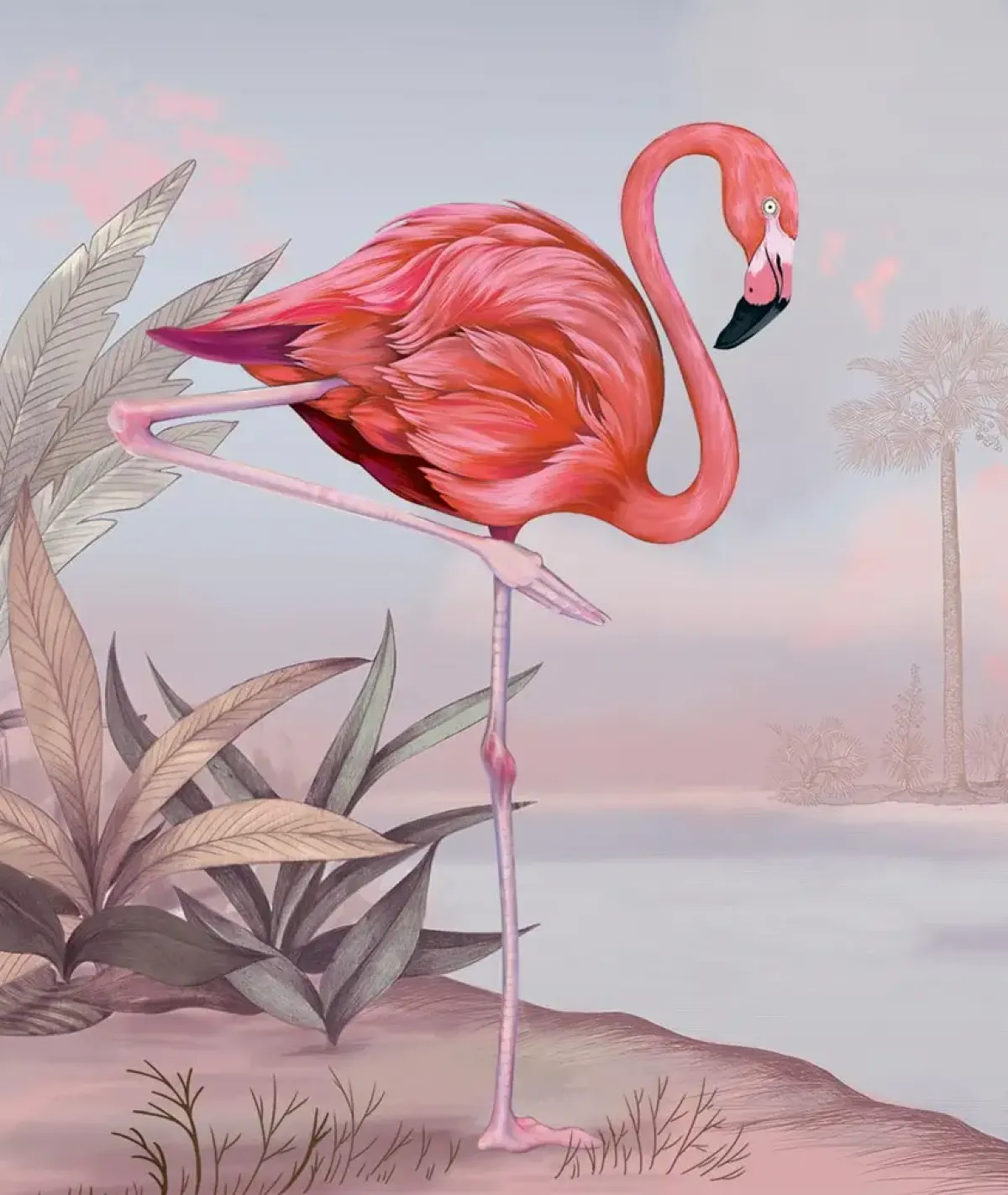 Tapeta z flamingiem na różowym tle Crimson Flamingo Pink Wallcolors