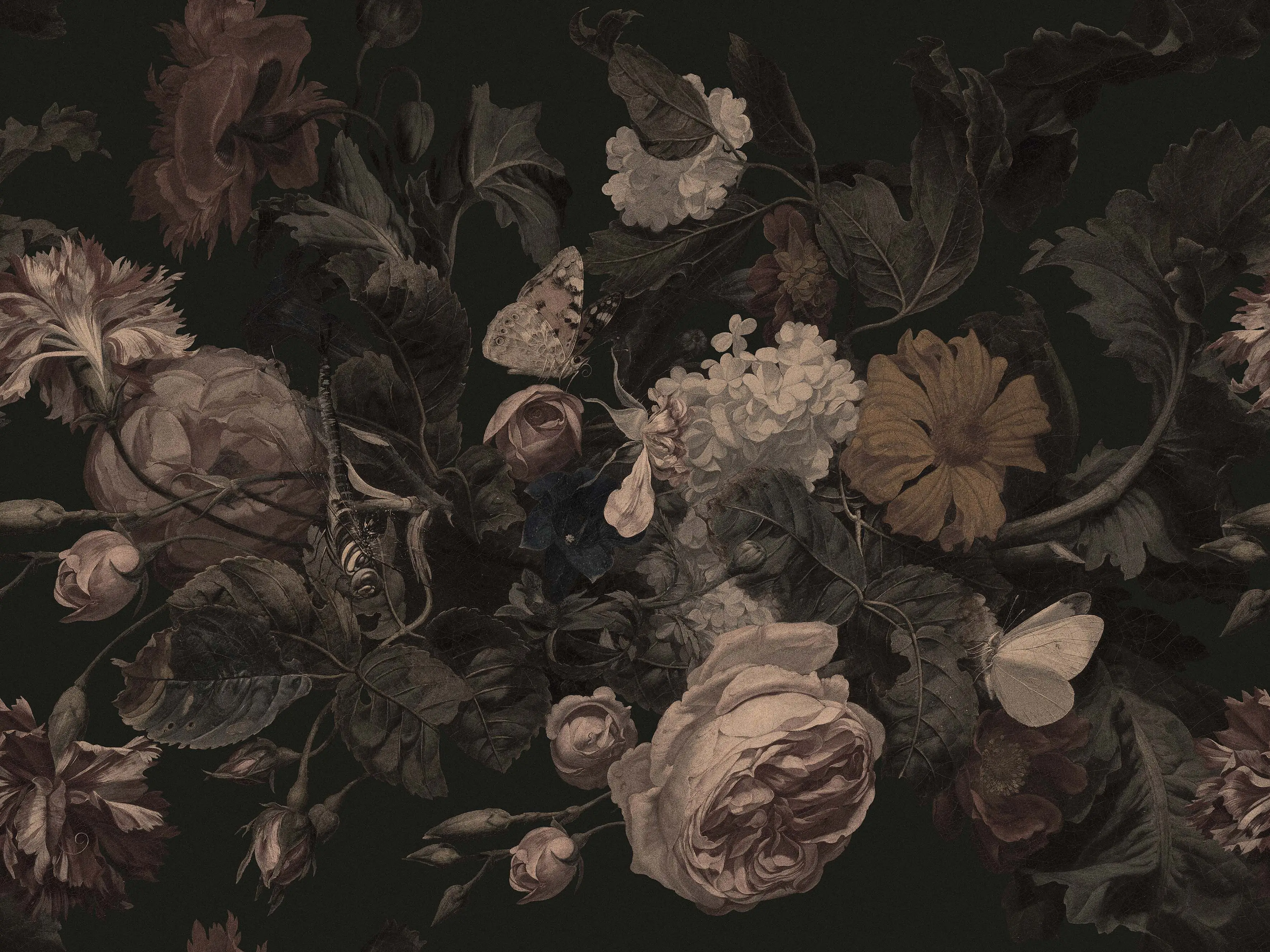 Elegancka tapeta w duże kwiaty Wallcolors Dragonfly Garden Black