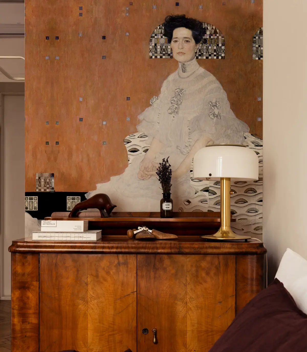 Wyjątkowa tapeta artystyczna inspirowana secesyjnym malarstwem Klimta łączy w sobie geometryczną nowoczesność ze zmysłową elegancją portretu. Wprowadza do wnętrza klimat wielkiej sztuki, nadając przestrzeni szlachetny i wyrazisty charakter. Starannie dobrany materiał gwarantuje trwałość, łatwość montażu oraz eleganckie wykończenie.