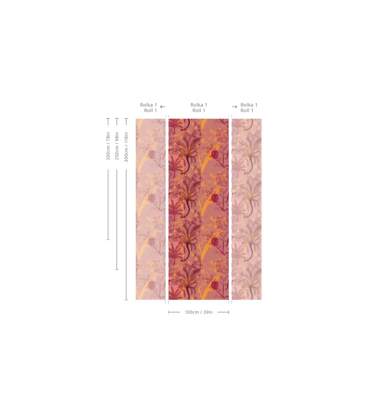 Tapeta w nowoczesnym wydaniu, zaskakuje odważnym zestawieniem kolorów: różu, pomarańczowego i burgundu, tworząc artystyczną, tropikalną kompozycję z motywami egzotycznej roślinności. To idealna propozycja dla osób, które szukają wyrazistego akcentu inspirowanego naturą. Starannie dobrany materiał zapewnia trwałość, łatwość montażu oraz estetyczne wykończenie.