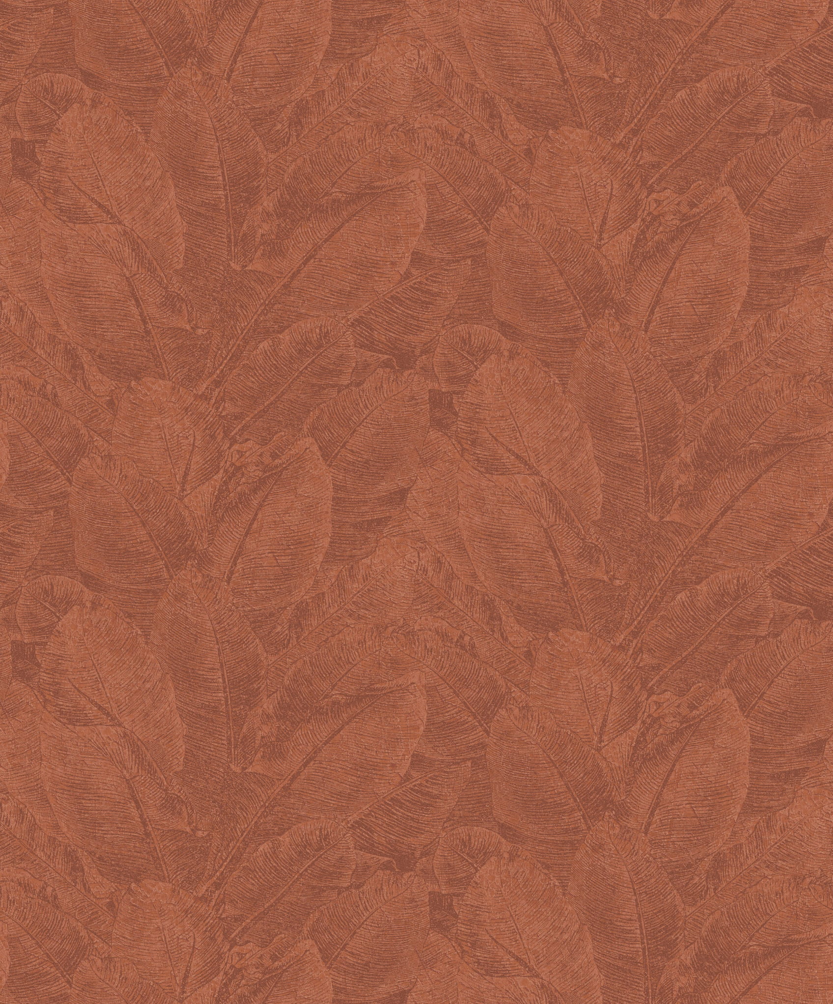 Wysokiej jakości tapeta ścienna ze wzorem liści bananowca z wyraźnie widocznym użyłkowaniem w rdzawej, przyjemnej dla oka kolorystyce.