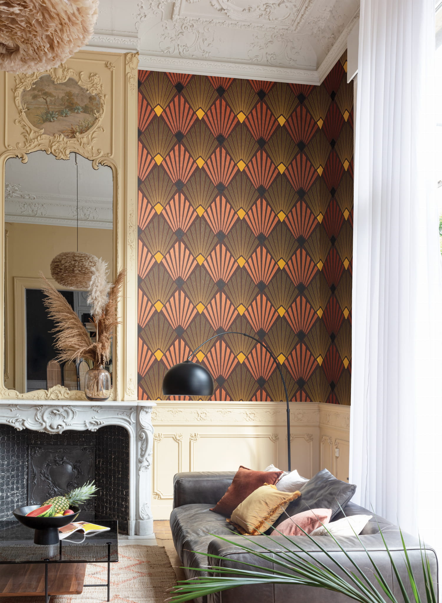 Tapeta Diego z kolekcji Havana inspirowana jest naturalnymi teksturami i ciepłymi kolorami, które przywołują atmosferę kubańskich krajobrazów i tropikalnych klimatów. Jest to wysokiej jakości tapeta ścienna w stylu art deco we wzór dużych wachlarzy z wyczuwalną w dotyku fakturą.