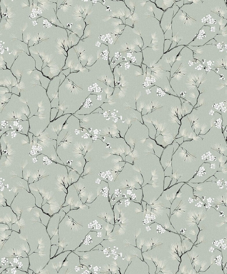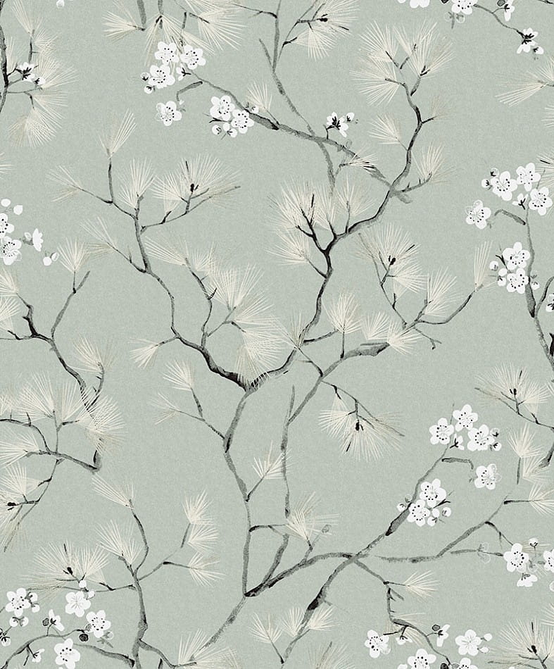 Tapeta ścienna z eleganckim wzorem inspirowanym japońskim minimalizmem. Subtelne kwiaty osadzono na delikatnych gałązkach, co tworzy harmonijną kompozycję przypominającą obraz ręcznie malowany akwarelami.
