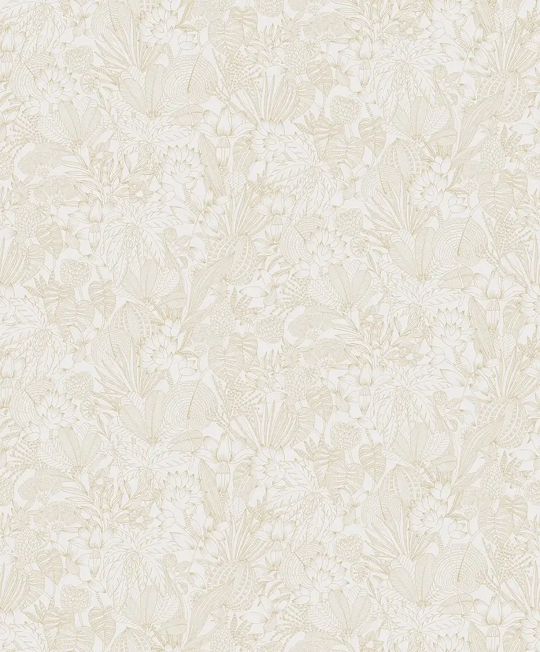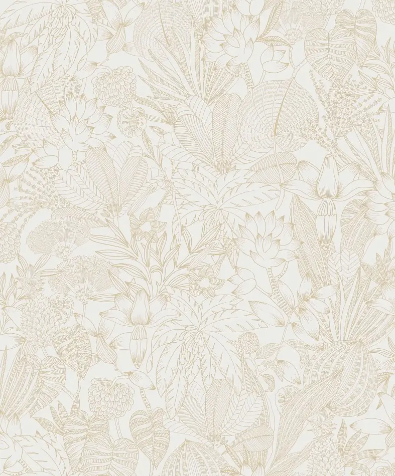 Tapeta przedstawia gęsty, elegancki wzór roślinny z precyzyjnie narysowanymi kwiatami, liśćmi oraz owocami, tworząc harmonijną kompozycję. Wykonana z najwyższej jakości flizeliny jest łatwa w montażu i demontażu, a także bezpieczna dla zdrowia i środowiska.