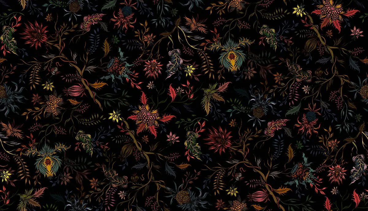 Tapeta kwiaty na ciemnym tle Night Flowers Wallcolors