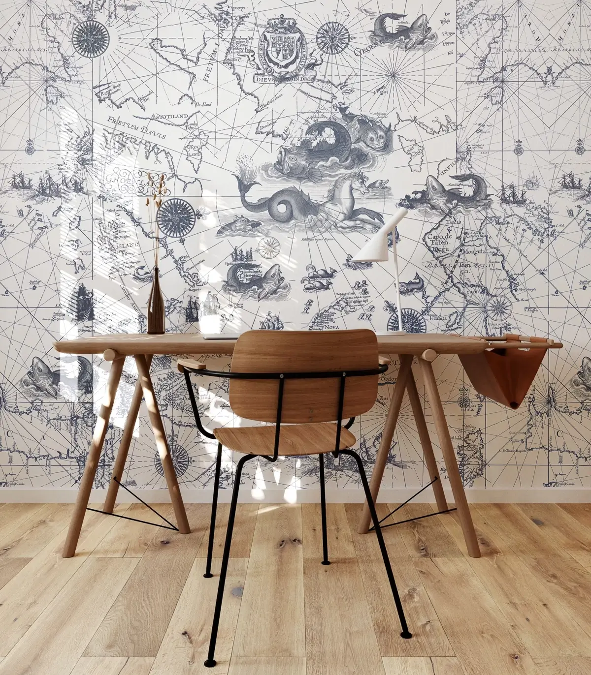 Stylizowana tapeta marynistyczna Ocean Map Wallcolors