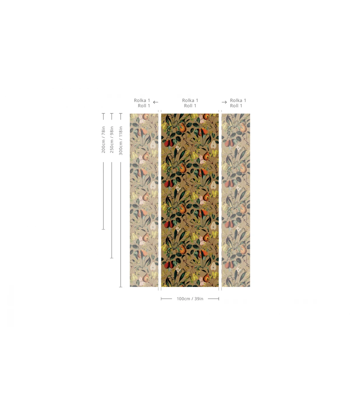 Tapeta z beżowym tłem i bogato ilustrowanymi owocami, tworzy we wnętrzu przytulną, a zarazem wyrafinowaną atmosferę. Starannie dobrany materiał zapewnia jej trwałość, łatwość montażu oraz estetyczne wykończenie.