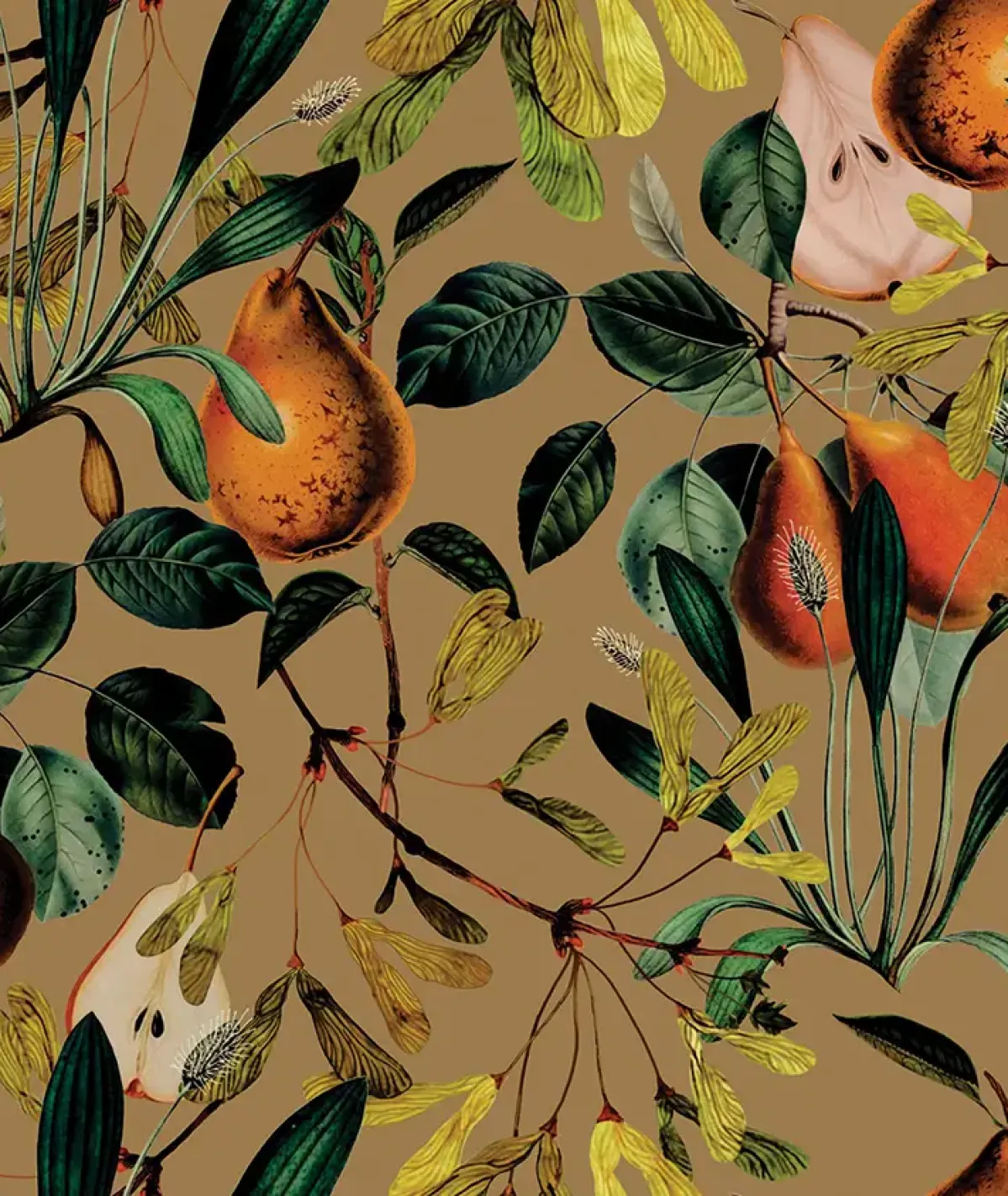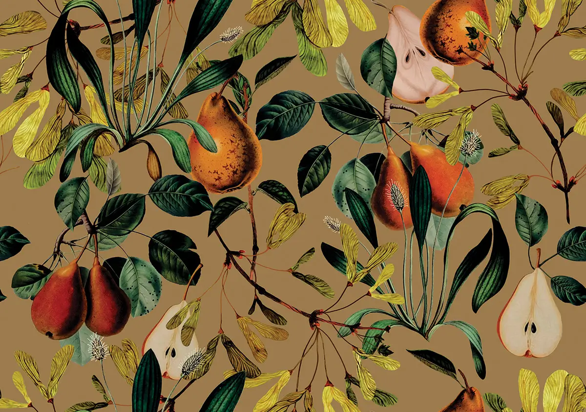 Tapeta botaniczna z owocami Pear Beige Wallcolors