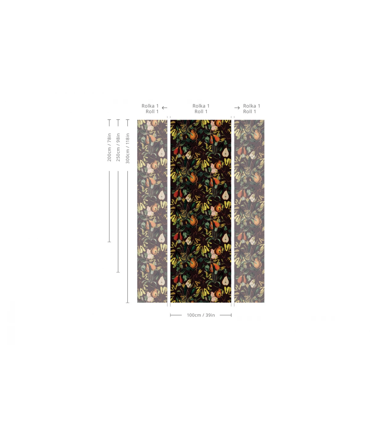 Tapeta zachwyca głębokim, ciemnym tłem i bogato ilustrowanymi owocami, tworząc we wnętrzu przytulną, a zarazem wyrafinowaną atmosferę. Starannie dobrany materiał zapewnia jej trwałość, łatwość montażu oraz estetyczne wykończenie.