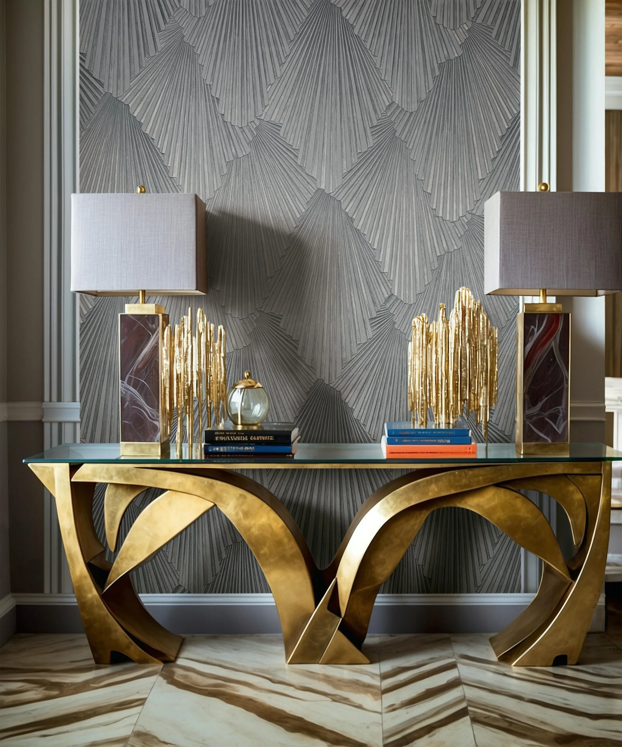 → Styl art deco: Elegancka symetria i wachlarzowy wzór nawiązują do klasyki art déco, idealnie uzupełniając wnętrza inspirowane luksusem i architekturą.