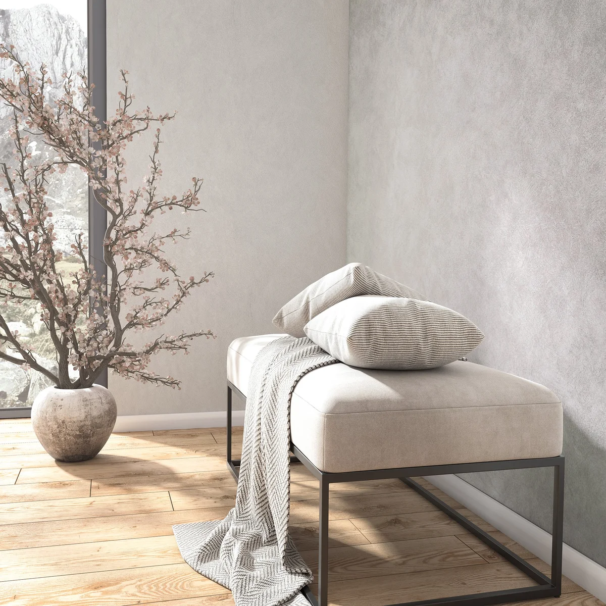 → Styl japandi: Tapeta struktura tynku idealnie wpisuje się w filozofię prostoty i naturalnych materiałów, tworząc spokojne, harmonijne tło.