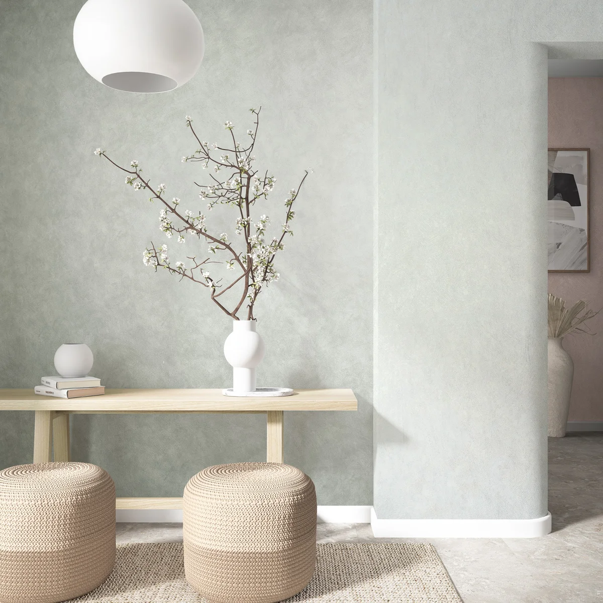 → Styl modern organic: Tapeta imitująca tynk świetnie współgra z drewnem, ceramiką i miękkimi tkaninami, podkreślając naturalny charakter aranżacji.