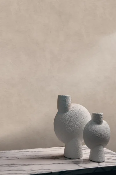 Tapeta wyróżnia się subtelną, jednolitą kolorystyką, uzupełnioną delikatną, tekstylną fakturą nadającą powierzchni elegancki charakter. Materiał jest trwały i łatwy w montażu, pozwala na stworzenie estetycznej i harmonijnej aranżacji we wnętrzu.