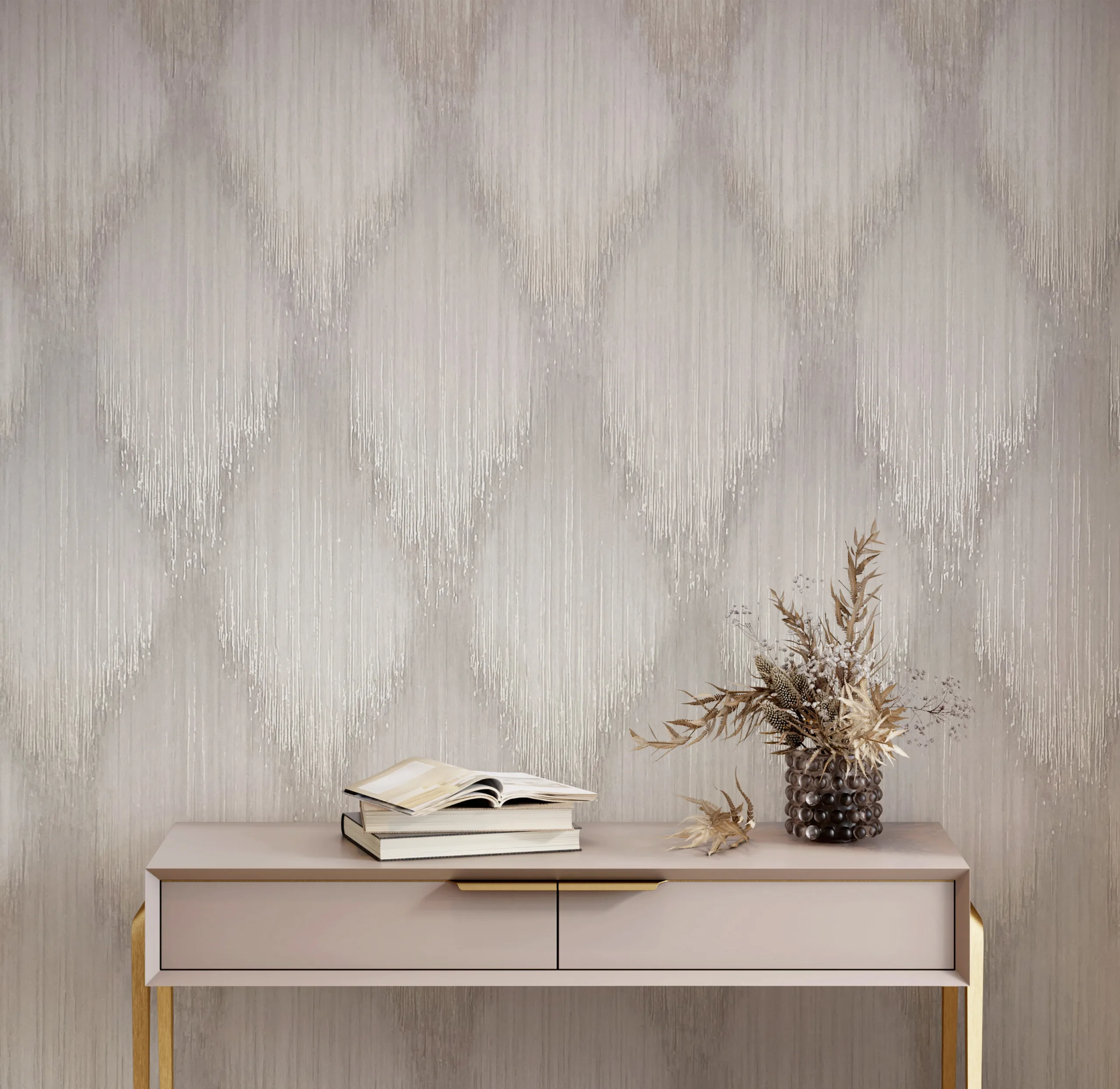 → Styl glamour i fashion: Jako część kolekcji Fashion Icon, wzór ten wnosi estetykę inspirowaną haute couture, więc świetnie współgra z dekoracjami o wyrafinowanym wykończeniu, np. welurowymi zasłonami, kryształowymi lampami, akcentami w odcieniach złota lub miedzi.