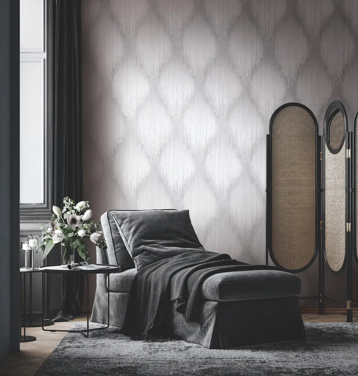 → Styl glamour i fashion: Jako część kolekcji Fashion Icon, wzór ten wnosi estetykę inspirowaną haute couture, więc świetnie współgra z dekoracjami o wyrafinowanym wykończeniu, np. welurowymi zasłonami, kryształowymi lampami, akcentami w odcieniach złota lub miedzi.