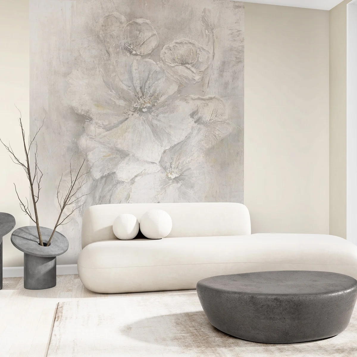 → Styl minimalistyczny: W minimalistycznych wnętrzach taka tapeta pełni funkcję subtelnego tła, które nie jest całkowicie płaskie jak farba. Dzięki temu ściana zyskuje ciekawą strukturę, a wnętrze staje się przytulniejsze.