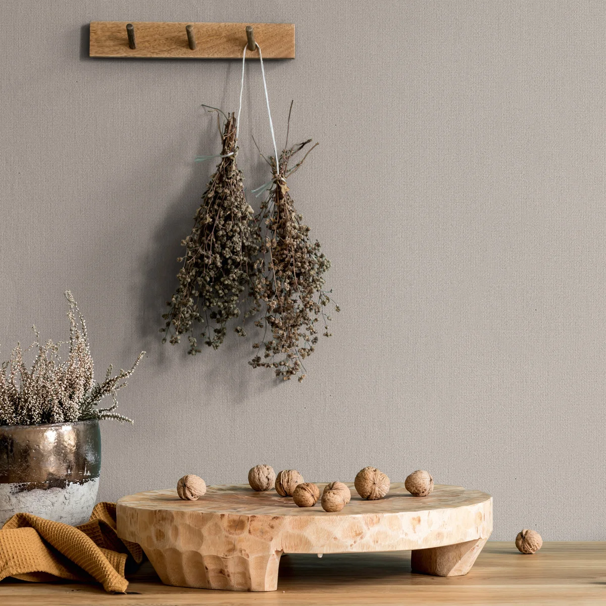 Subtelny efekt tkaniny sprawia, że tapeta łatwo dopasowuje się do wielu stylów, szczególnie tych opartych na prostocie i jakości materiałów: