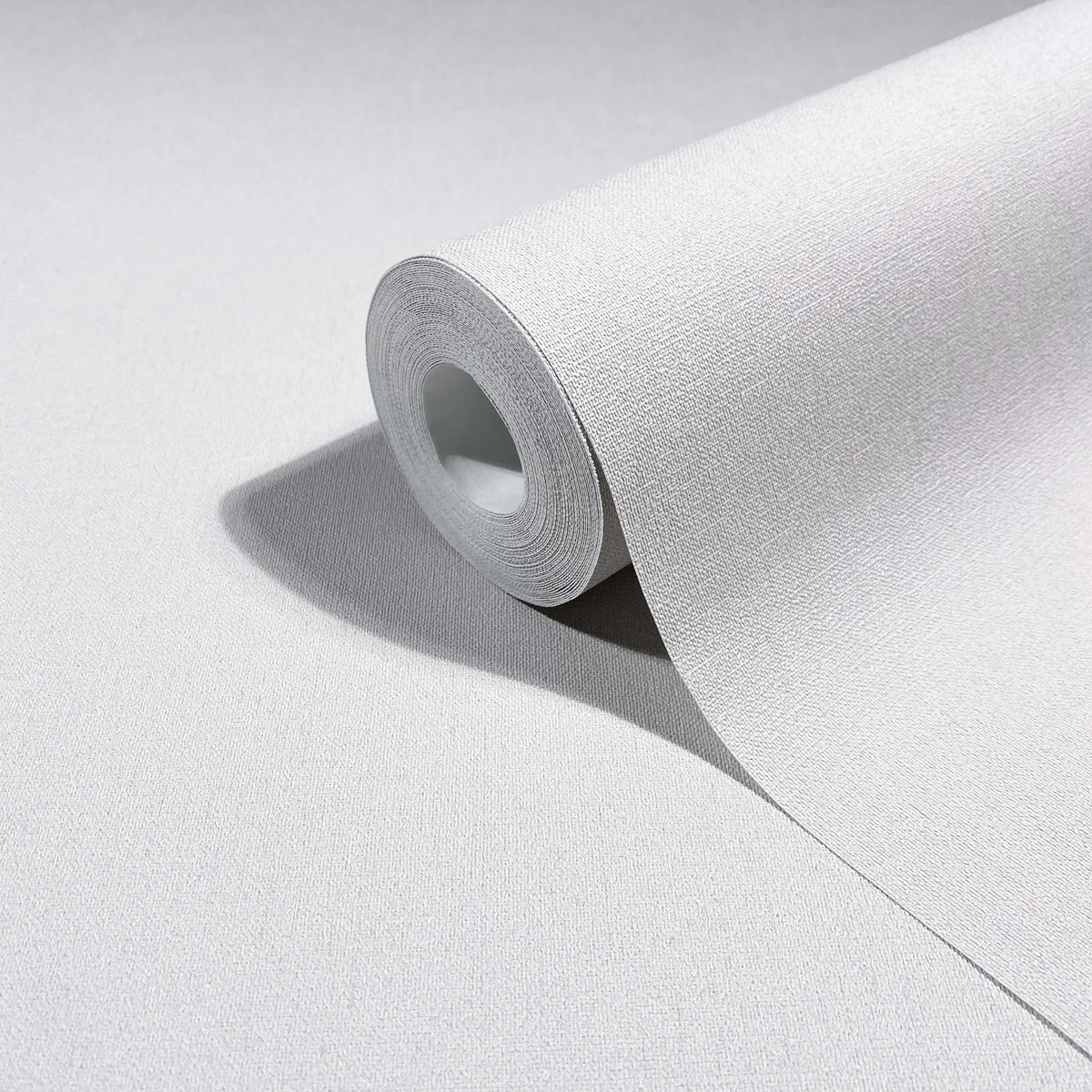Tapeta strukturalna o wyglądzie delikatnej, jednolitej tkaniny, która doskonale sprawdzi się jako spokojne tło na ścianach, gdzie dekorację tworzą meble, materiały i światło, a nie intensywny wzór.