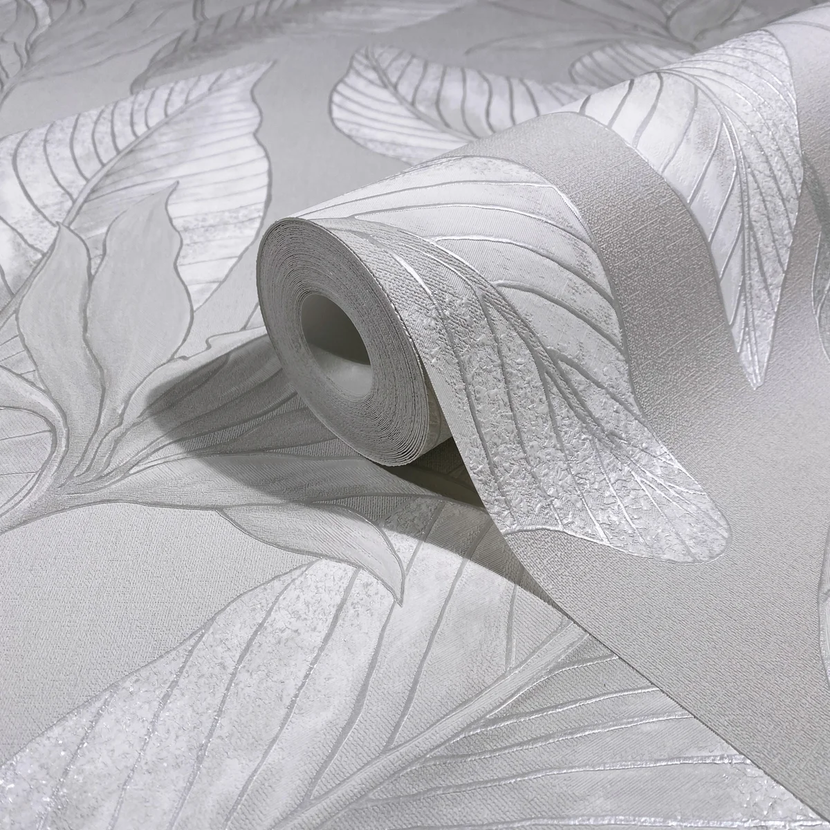 Szara tapeta winylowa na flizelinie z motywem liści 36463 Whisper Marburg