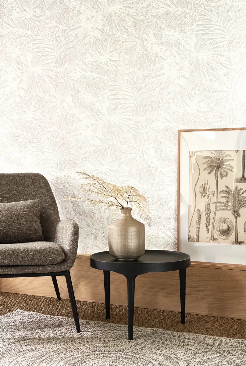 Tapeta ze wzorem dużych, gęsto ułożonych liści palmowych o wyraźnej, dekoracyjnej strukturze, tworzącym wrażenie trójwymiarowej głębi. Wzór układa się w elegancką, organiczną kompozycję, która nadaje ścianie wyrazisty i naturalny charakter. Wykonana jest z materiałów najwyższej jakości, wyjątkowo trwała, łatwa w aplikacji i dopracowana w każdym detalu.