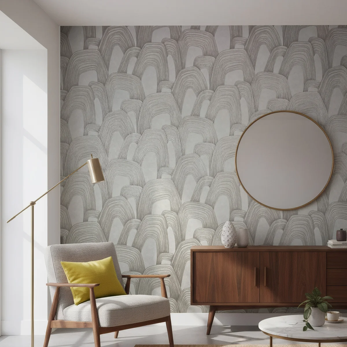 → Styl modern organic: To naturalne środowisko dla tapety dekoracyjnej inspirowanej miękkimi, płynnymi formami. W połączeniu z drewnem, kamieniem i tkaninami boucle tworzy harmonijną, nowoczesną aranżację.