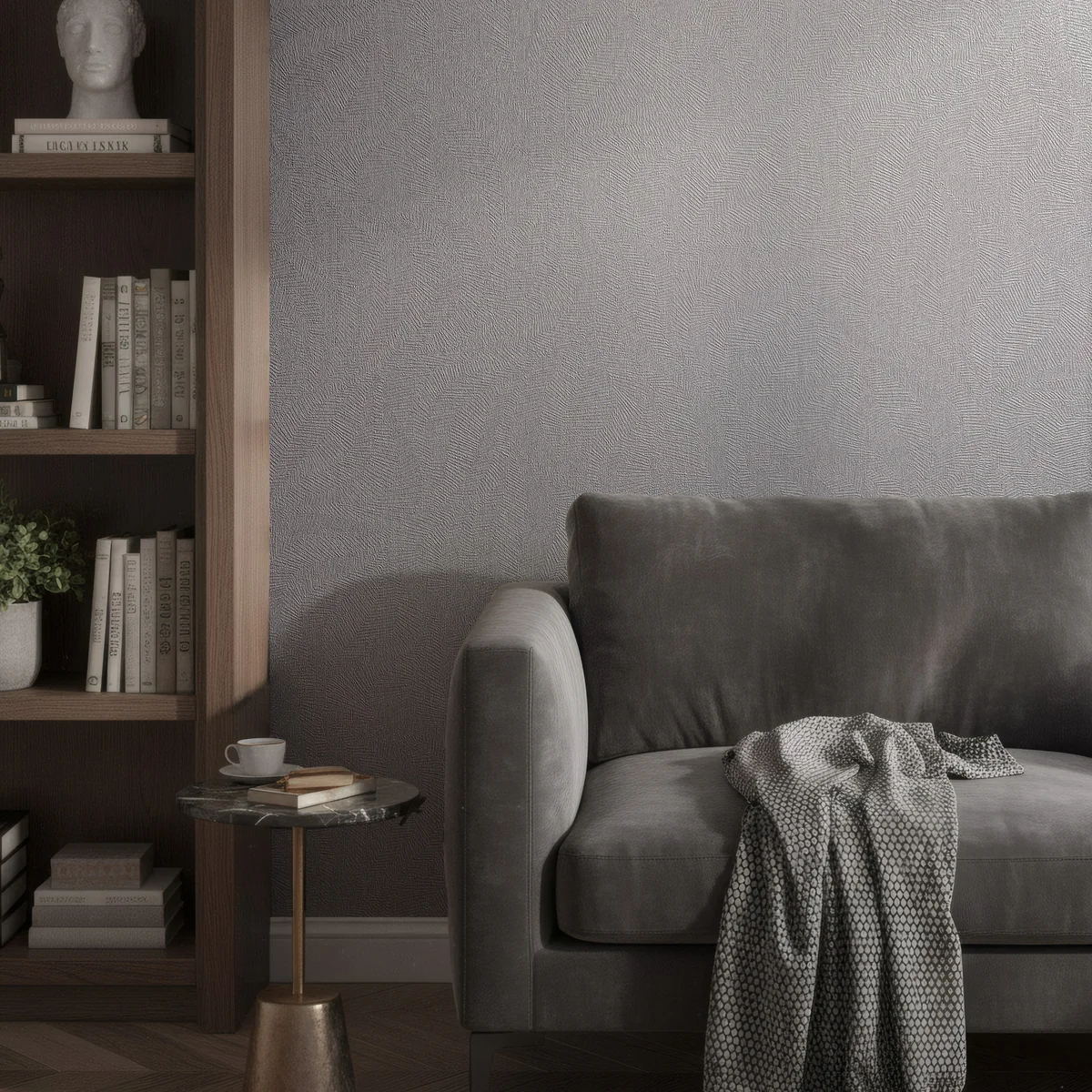 → Salon, pokój gościnny: W salonie tapeta z teksturą stanowi uniwersalne tło dla różnych dodatków i stylów wyposażenia. Pozwala uzyskać efekt dopracowanego wnętrza bez nadmiernej dekoracyjności.