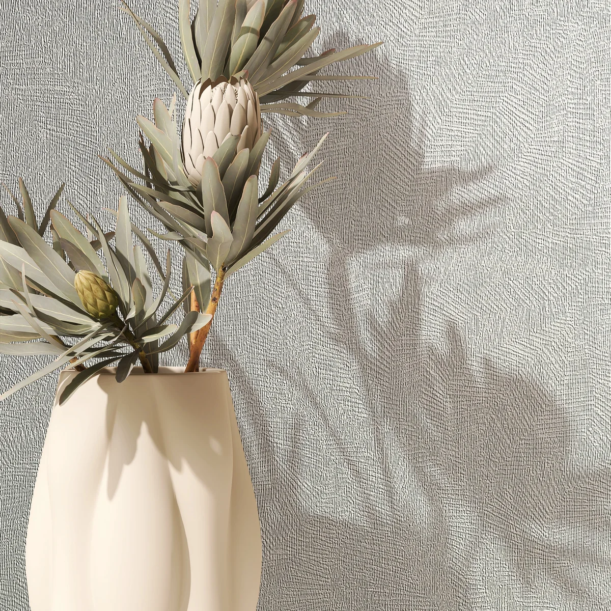 Nowoczesna tapeta strukturalna o matowym wykończeniu, z delikatnie tłoczonym wzorem inspirowanym naturą, tworzącym na ścianie subtelną grę światła i cienia. Stanowi eleganckie, spokojne tło aranżacyjne, które wprowadza do wnętrza wrażenie głębi i wyrafinowanej faktury bez dominującego wzoru.