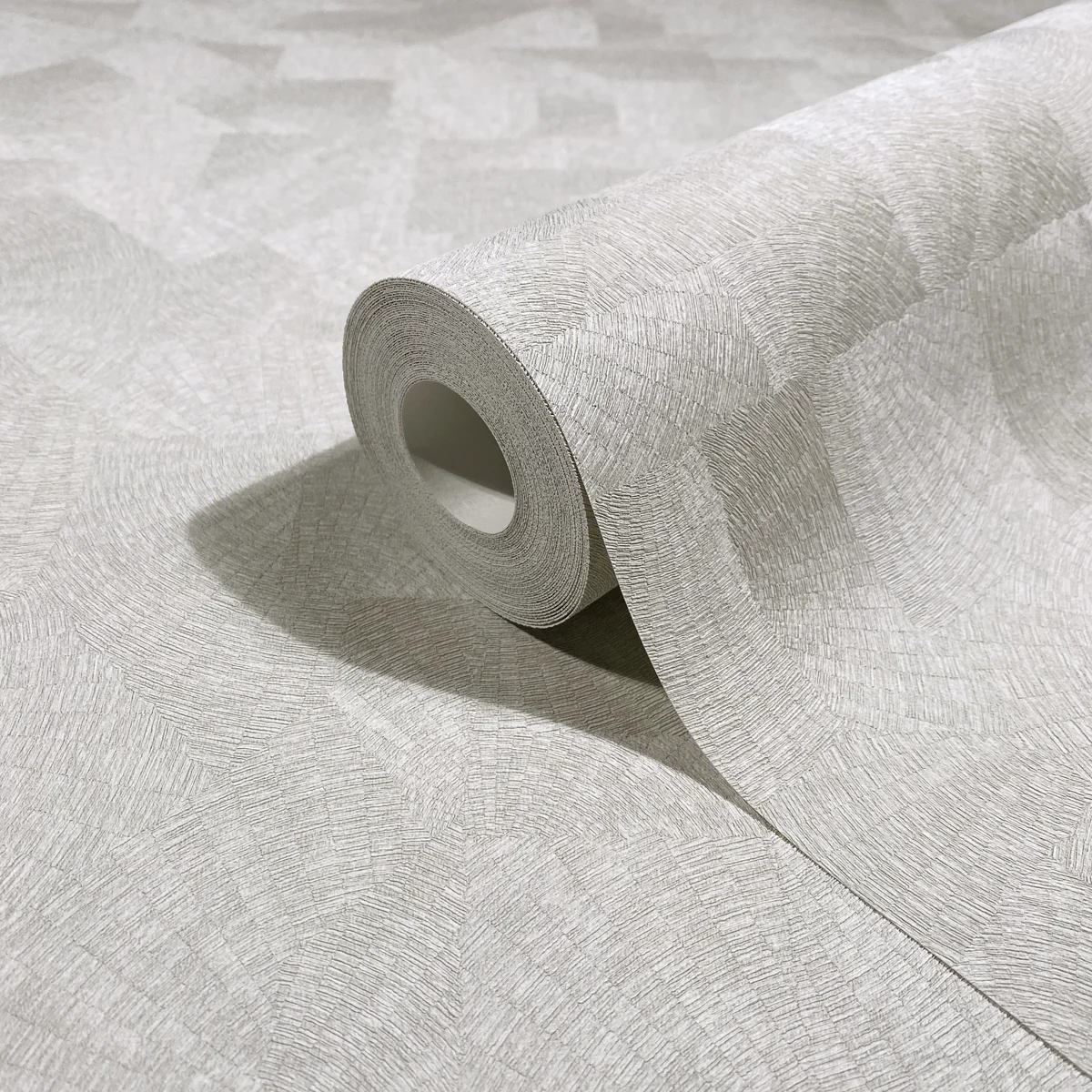 Subtelna tapeta geometryczna z delikatnym, tłoczonym wzorem, który tworzy efekt lekkiej, nieregularnej struktury zmieniającej się pod wpływem światła. Świetnie sprawdza się jako elegancka tapeta do salonu, sypialni lub nowoczesnych wnętrz, gdzie ważna jest spokojna, ale wyrafinowana dekoracja ściany.