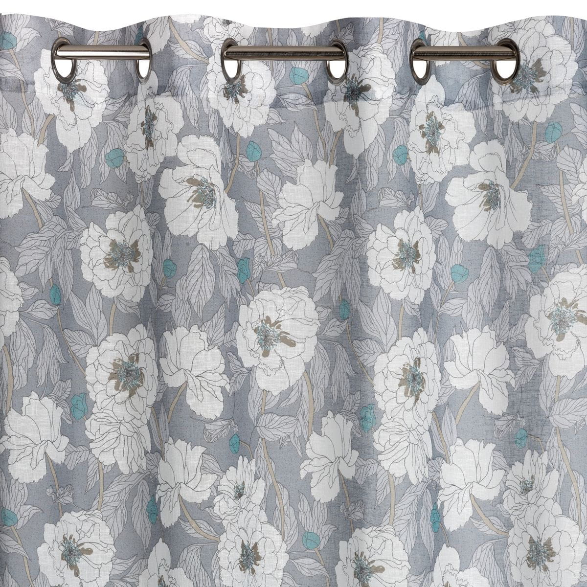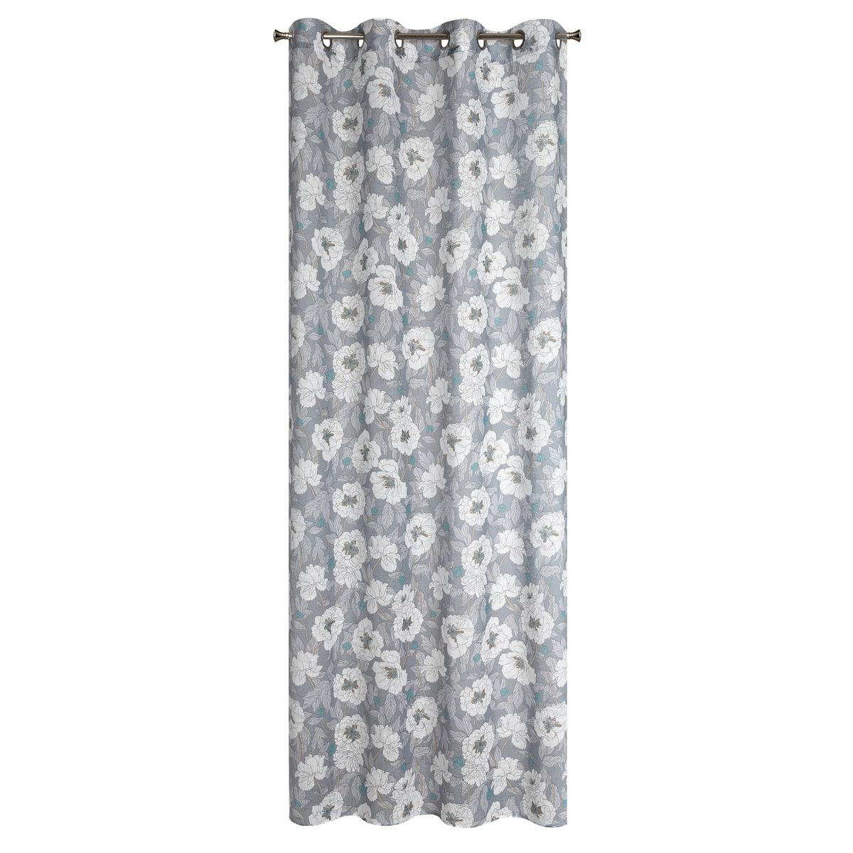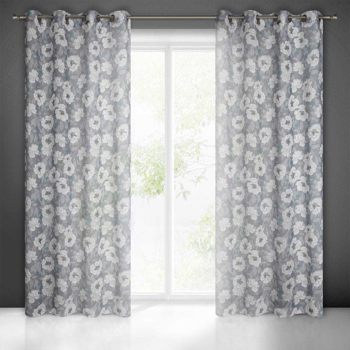Gotowa zasłona o strukturze lnu , w kolorze popielatym + jasne odcienie ,w kwiatowy wzór.